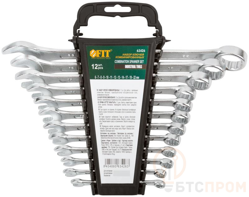 Ключи комбинированные ‘’Хард’’ FIT IT предназначены для работ с крепежными элементами. Ключи проходят процесс закалки, повышающей твердость и износостойкость ключей. Наклон рабочих частей в 15° повышает эффективность работы. Накидная часть ключа выдерживает максимальные нагрузки и наиболее эффективна при первичном откручивании и окончательном затягивании. Накидная часть с 12-гранным профилем прочно фиксируется на крепеже. Рожковая часть ключа эффективна при работе в труднодоступных местах. Эргономичная форма ключей обеспечивает надежный хват. Хромированное покрытие предотвращает коррозию. Пластиковый держатель позволяет организованно хранить ключи.
