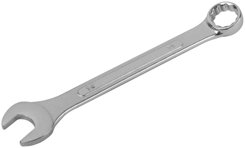Ключ комбинированный усиленный ‘’Модерн’’ FIT IT предназначен для работ с крепежными элементами. Ключи изготовлены из качественной инструментальной стали с последующей холодной штамповкой с целью повышения прочности и износостойкости. Накидная часть ключа выдерживает максимальные нагрузки и наиболее эффективна при первичном откручивании и окончательном затягивании. Рожковая часть ключа эффективна при работе в труднодоступных местах. Эргономичная форма ключей обеспечивает надежный хват. Хромированное покрытие предотвращает коррозию.
