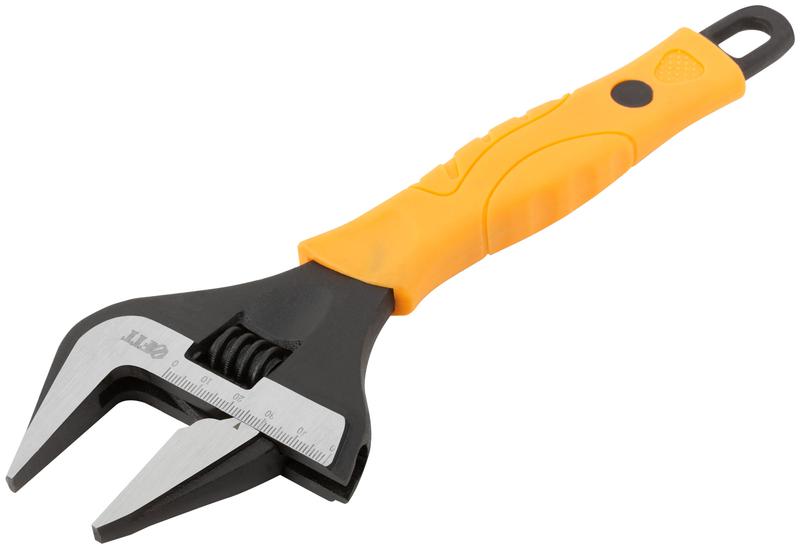 Ключ разводной "Эталон" CrV узкие губки шкала экстра увелич. захват прорезин. ручка 250мм 50мм FIT 70197
