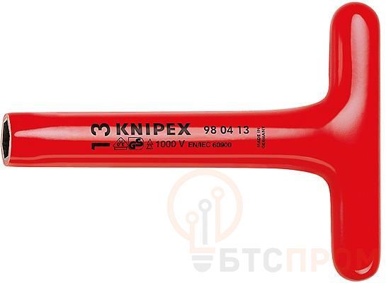 Ключ торцевой шестигранный с Т-образной рукояткой VDE 1000В размер под ключ 13мм L-300мм диэлектрический Knipex KN-980513