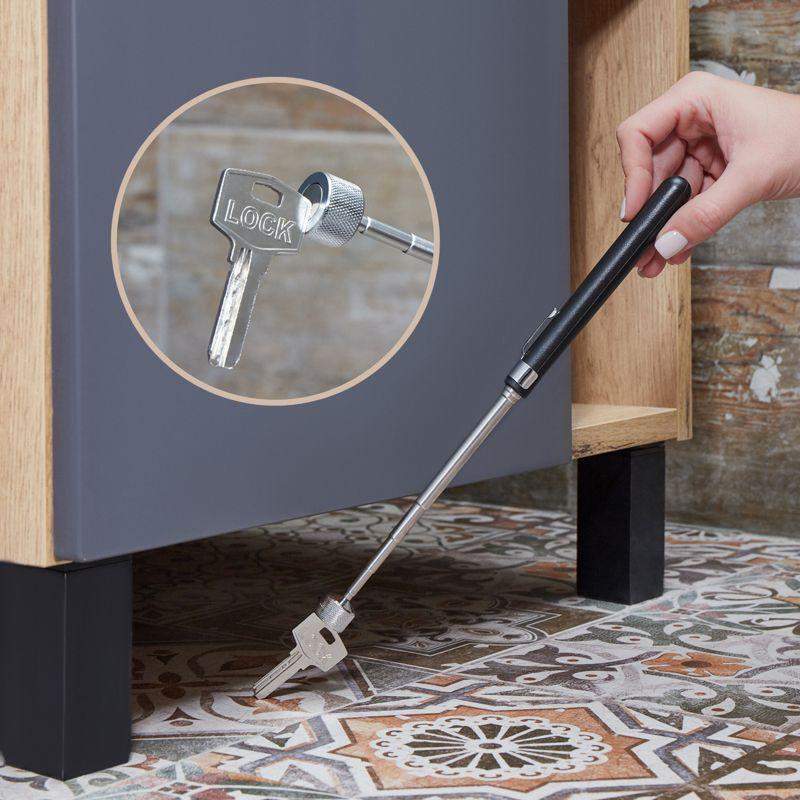 Телескопический магнит REXANT позволяет найти и достать металлические предметы из труднодоступных мест. Незаменимый инструмент для автомехаников, мастеров по ремонту электротехники, моделистов. Широко применяется в быту. Стержень раздвигается: длина регулируется от 180 до 850 мм. Диаметр магнита 11 мм. Инструмент изготовлен из высококачественной нержавеющей стали. На ручке располагается держатель для крепления на одежде или кармане сумки для инструментов. Вес удержания 2300 г.