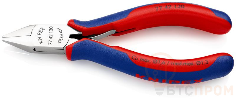 Бокорезы для электроники острая головка режущая кромка без фаски L-115мм твердость режущих кромок 57 HRC Knipex KN-7742130