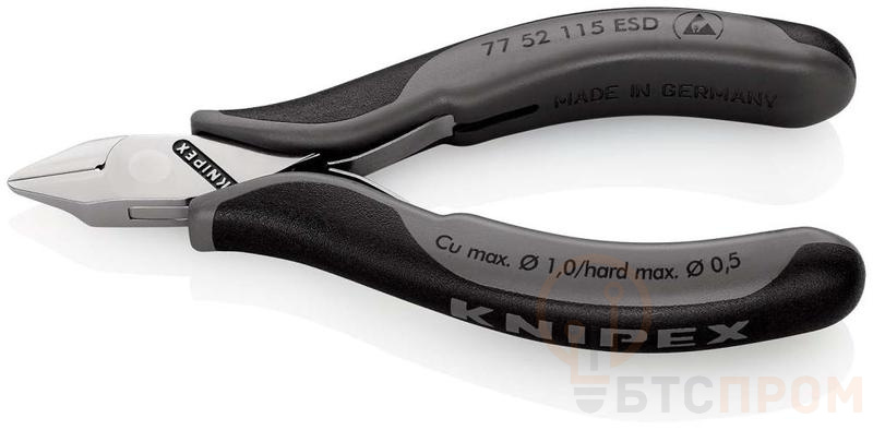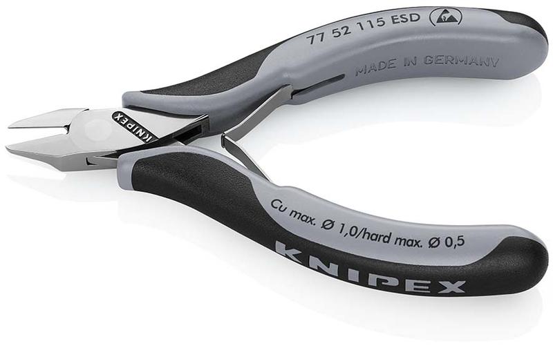 Бокорезы ESD острая плоская головка режущая кромка с маленькой фаской L-115мм антистатические Knipex KN-7752115ESD