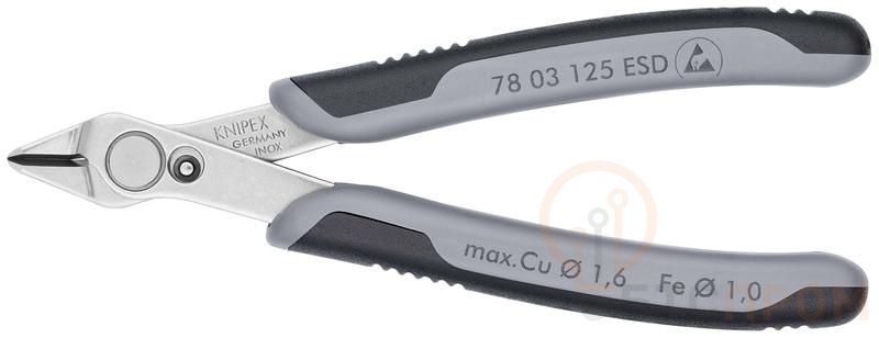 Бокорезы прецизионные ESD для самых тонких работ режущая кромка без фаски L-125мм твердость режущих кромок 54 HRC Knipex KN-7803125ESDSB