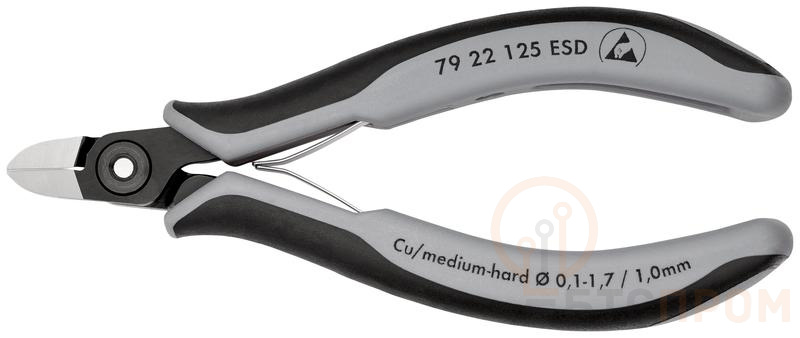 Бокорезы прецизионные ESD для тонких работ круглая головка режущая кромка без фаски L-125мм антистатические Knipex KN-7922125ESD