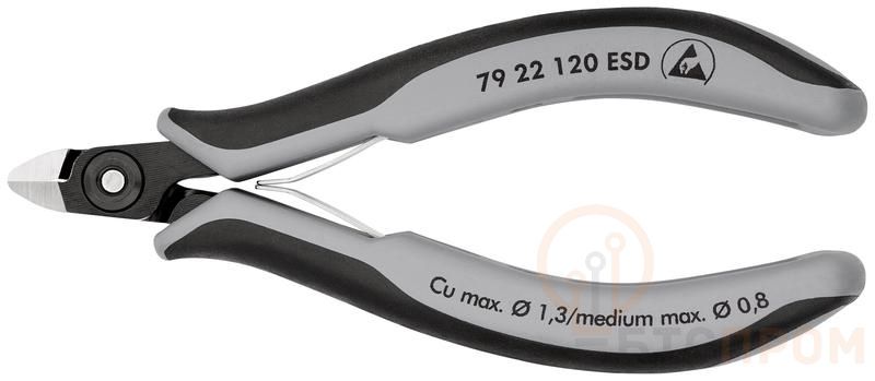 Бокорезы прецизионные ESD для тонких работ маленькая головка режущая кромка без фаски L-120мм антистатические Knipex KN-7922120ESD