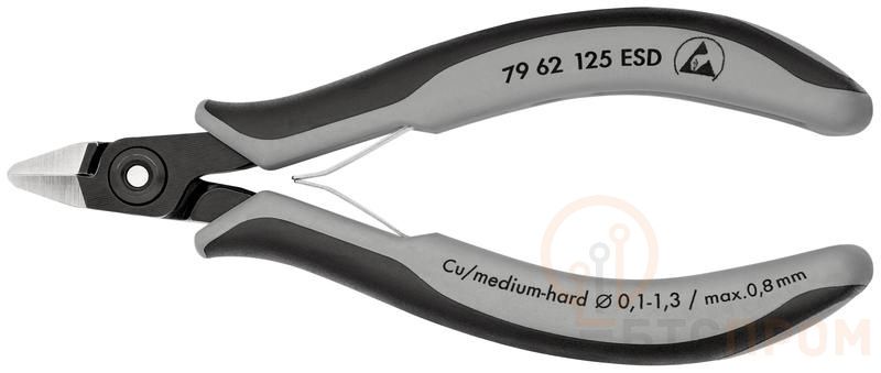 Бокорезы прецизионные ESD для тонких работ острая головка режущая кромка без фаски с зажимом для проволоки L-125мм Knipex KN-7962125ESD