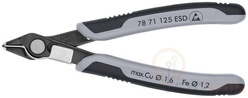 Бокорезы прецизионные ESD для тонких работ режущая кромка без фаски с зажимом для проволоки L-125мм 64 HRC Knipex KN-7871125ESD