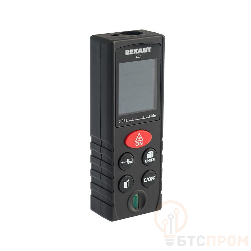 Лазерный дальномер REXANT R-40 — это электронная рулетка, прибор для быстрого бесконтактного определения расстояния до 40 метров. Лазерный дальномер-рулетка — незаменимый инструмент для строителей, риэлторов, установщиков мебели и т. п. Позволяет быстро и точно определить расстояние, площадь, объем, запоминает значения, имеет функцию неперывного измерения "MAX/MIN". В дальномерах Rexant используется инновационный EBTN дисплей, не требующий дополнительной подсветки в условиях плохой освещенности, и прекрасно читаемый практически под любым углом при ярком освещении, например в солнечный день. В комплекте поставки имеет чехол на ремень, две батарейки ААА, инструкцию на русском языке. Характеристики: Функции измерения: расстояние, теорема Пифагора, площадь, объем, непрерывное измерение "MAX/MIN". Память: 20 значений Диапазон измерений R-40: 0,05 м ~ 40 м Класс пылевлагозащиты: IP54 Погрешность измерения (стандартное отклонение): ± 2,0 мм Единица измерения: метр, фут, дюйм Единица площади: м2, фут2 Тип лазера: 620~690 нм Класс лазера: II, <1 мВт Время единичного измерения: 0,25 сек Рабочая температура: 0~+40 °C Температура хранения: -20~+65 °C Батареи: ААА (щелочные), 2х1,5 В Количество измерений от одного заряда батареи: >5000 Вес (без батареи): 78 г Размеры: (ДхШхВ) 110х40х25 мм Некоторые секреты при работе с лазерным дальномером: Выбирайте всегда хорошо отражаемую поверхность для точного результата. Если вы не смогли найти хорошо отражаемую поверхность, можно просто прикрепить хорошо отражаемые пластины к измеряемой поверхности. Это может быть любой блестящий металл, различные пластины. Отражение под углом — если целевая поверхность не вертикальна (параллельна) по отношению к лазерному лучу, это приведет к неправильному подсчету времени отражения и прибор выдаст неточные результаты. Просто приложите немного отражателя к поверхности мишени и согните ее в вертикальной, по отношению к лазерному лучу, плоскости.