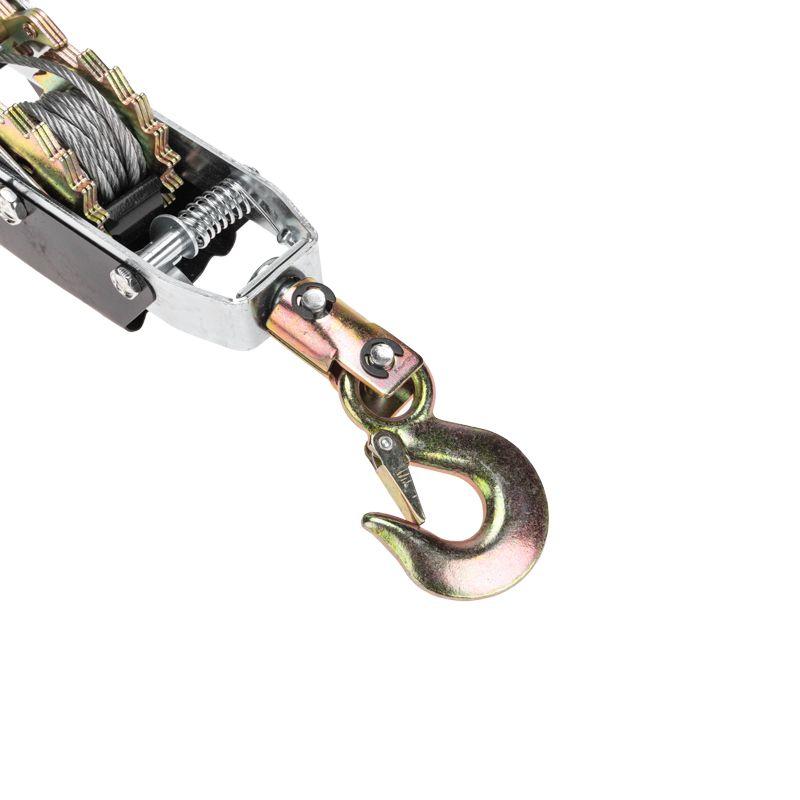 Ручная лебедка предназначена для подъема и перемещения грузов при выполнении монтажных и демонтажных работ в строительстве или в быту. Широко применяется для буксировки застрявших автомобилей. Удобна для натягивания различных тросов и проводов. Благодаря рычажному механизму проста в использовании и не требует больших усилий от оператора. Лебедка с двойным храповым механизмом полностью автономна и может использоваться в любом пространственном положении без стационарного закрепления на месте. Изделие оснащено двумя крюками и стальным тросом высокой прочности. Тяга – 4 т, подъем – 1,6 т.