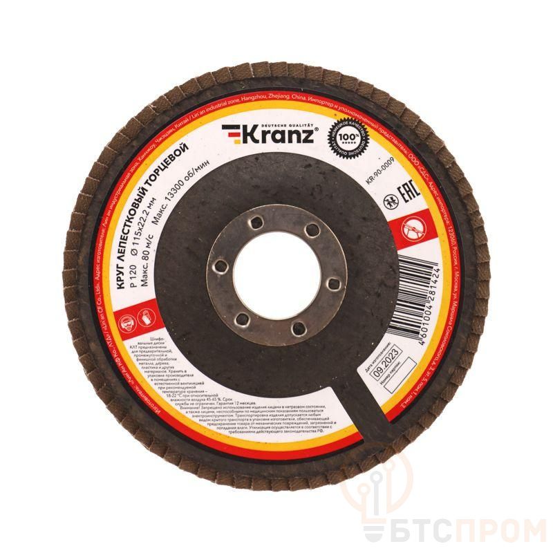 Круг лепестковый торцевой P120 115х22.2мм Kranz KR-90-0009 фото в каталоге от BTSprom.by