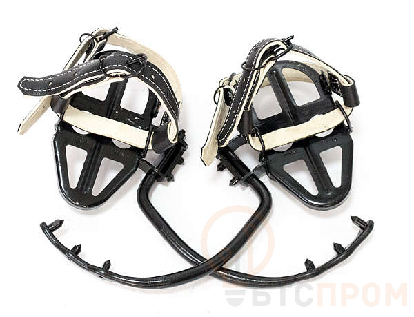 Когти монтерские КМ-1 предназначены для подъема на деревянные и деревянные с железобетонными приставками опоры линий электропередач, а также на опоры линии связи и работы на них. Серп выполнен из инструментальной стали марки 40Х, кованый, шипы из инструментальной стали, закаленные. В комплекте с ремнями кожаными.