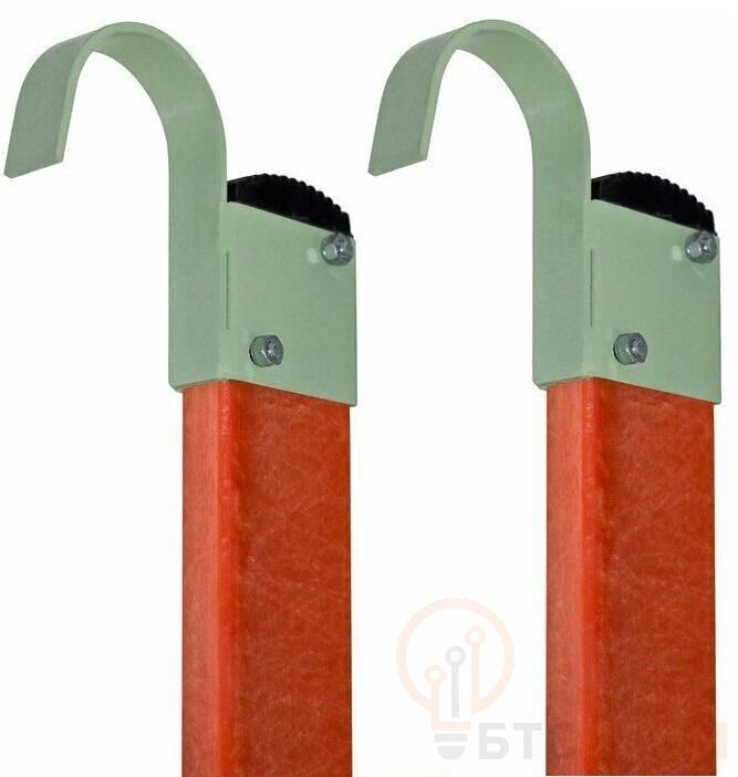 При установке приставной лестницы в условиях, когда возможно смещение, верхние концы лестниц, приставляемых к проводам, снабжаются специальными крюками, предотвращающими падение лестницы от напора ветра или случайных толчков. У подвесных лестниц, применяемых для работы на конструкциях или проводах, должны быть приспособления, обеспечивающие прочное закрепление лестниц за конструкции, или провода. Устанавливать и закреплять лестницы и площадки на монтируемые конструкции следует до их подъёма. Применяется для лестниц серии "Стандарт" с сечением профиля 40х25