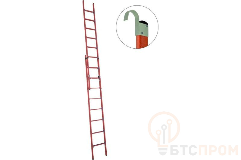 Лестница приставная диэлектрическая ЛСПРД-5.0 Евро К крюки раздвижная стеклопластик. Антиток Д471575