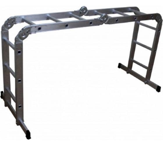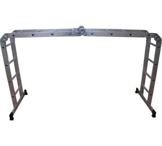 Лестница-трансформер ЛТА 4х4 от бренда «Вихрь» — это универсальный и надежный помощник для профессионального и бытового использования. Модель 73/5/1/15 состоит из четырех секций, каждая длиной 1.5 метра, что позволяет собирать конструкцию общей высотой до 5 метров в качестве приставной лестницы или создавать разнообразные конфигурации: две独立的 лестницы, лестницу с консолью или строительные помосты.