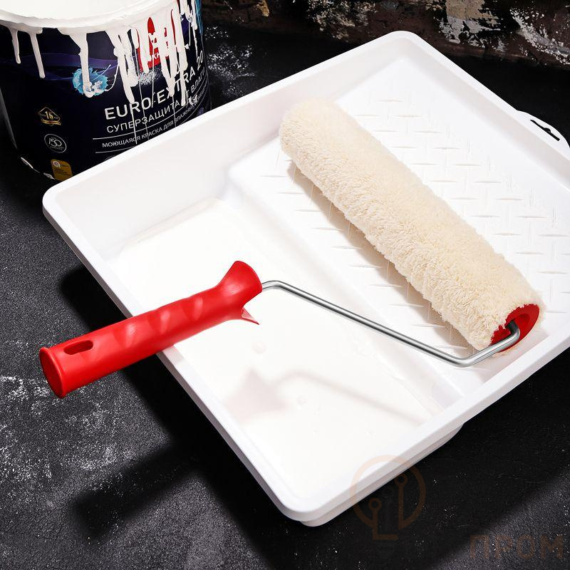Малярный набор состоит из малярного валика REXANT, который имеет меховое покрытие и применяется при производстве малярных работ в строительстве, предназначен для окраски поверхностей лакокрасочным составом, а также из малярной крюветки (ванночки) REXANT, которая представляет собой пластиковую ванночку для краски прямоугольной формы. В набор входят: Кюветка (ванночка) малярная 33х35 см, белая REXANT Валик бесшовный, ворс 12 мм, ширина ролика 240 мм, O 42 мм, бюгель 6 мм REXANT Технические характеристики набора: Материал ролика: пластмасса Ширина ролика: 240 мм Диаметр ролика: 42 мм Материал шубки: шерсть 50 %; полиэстер 50 % Цвет шубки: бежевый Длина ворса: 12 мм Материал бюгеля: металл Ширина бюгеля: 6 мм Материал рукоятки: пластик Материал ванночки: пластмасса Габариты ванночки (ШхД): 33х35 см Цвет: белый