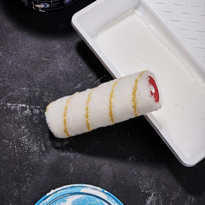 Ролик (сменный) полиамид бел. с желт. полосой ворс 11мм шир. ролика 180мм d42мм бюгель 8мм "Мастер" Rexant 89-0107