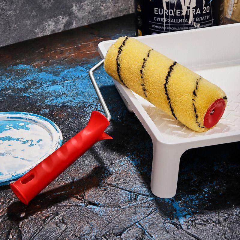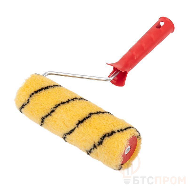 Малярный валик REXANT имеет меховое покрытие и применяется при производстве малярных работ в строительстве, предназначен для окраски поверхностей лакокрасочным составом. Валик состоит из пластмассового цилиндра, мягкой шубки, бугеля (изогнутого металлического стержня) и удобной пластиковой рукоятки. ОСНОВНЫЕ ПРЕИМУЩЕСТВА: 1) Шубка валика – универсальная ткань, которая подходит для всех видов ЛКМ, особенно хорошо подходит для алкидных эмалей. 2) Данный вид ворса идеален для обработки шероховатых поверхностей. 3) Облегченная конструкция рукоятки (уменьшенная толщина бугеля) сделает работу гораздо приятней, что особенно заметно, когда приходится держать инструмент на весу в течение долгого времени. 4) Валик изготовлен по технологии Thermofusion (заводское нанесение ткани на расплавленное основание). ТЕХНИЧЕСКИЕ ХАРАКТЕРИСТИКИ: Материал ролика: пластмасса Ширина ролика: 180 мм Диаметр ролика: 42 мм Материал шубки: полиакрил Цвет шубки: желтый с черной полосой Длина ворса: 11 мм Материал бюгеля: металл Ширина бюгеля: 6 мм Материал рукоятки: пластик Малярный инструмент REXANT сделает работу по строительству и ремонту быстрой и качественной. Вы с легкостью справитесь с поставленной задачей, а результат будет радовать вас долгие годы!