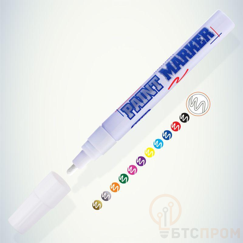 Описание: Маркер-краска (лаковый) MunHwa - профессиональный лаковый маркер на нитрооснове. Цвет - белый, диаметр пишущего узла - 4 мм. Страна производства - Южная Корея. Корпус маркера изготовлен из прочного алюминия, благодаря которому маркер-краска отлично подходит для работы в промышленных условиях. Нитрокраска отличается хорошей адгезией к различным материалам: - металл - дерево - резина - бетон - стекло - кожа и др. Благодаря высококачественным чернилам, краска ложиться на поверхность равномерным и однородным слоем, полностью закрашивая обрабатываемую поверхность, быстро сохнет. В быту Paint Marker применяют для реставрации дефектов на бытовой технике, обуви, кузове автомобиля, а также надписей на каменных плитах. Маркер-краска MunHwa имеет широкое применения в дизайне, декорировании и оформлении, цветовая палитра - 12 цветов. Особенности: 1) Подходит для нанесения надписей на ржавые, промасленные и загрязненные поверхности. 2) После высыхания, надписи обладают свето и водостойкостью, термостойкостью (белый цвет - до +1 000°С, остальные цвета - до +500°С), устойчивостью к механическим воздействиям. 3) Подходит для нанесения надписей на разогретые до +130°С поверхности. 4) Клапанный механизм пишущего узла исключает растекание и разбрызгивание краски, преждевременное пересыхание маркера, срок годности 5 лет. Инструкция по применению: 1) Встряхнуть маркер с закрытым колпачком. 2) Открыть колпачок. Удерживая маркер в вертикальном состоянии несколько раз надавить стержнем на поверхность до тех пор, пока краска не поступит на пишущих узел. 3) Выполнить надпись или рисунок. Дать составу высохнуть в течение 40-60 секунд. 4) Плотно закрыть колпачок.