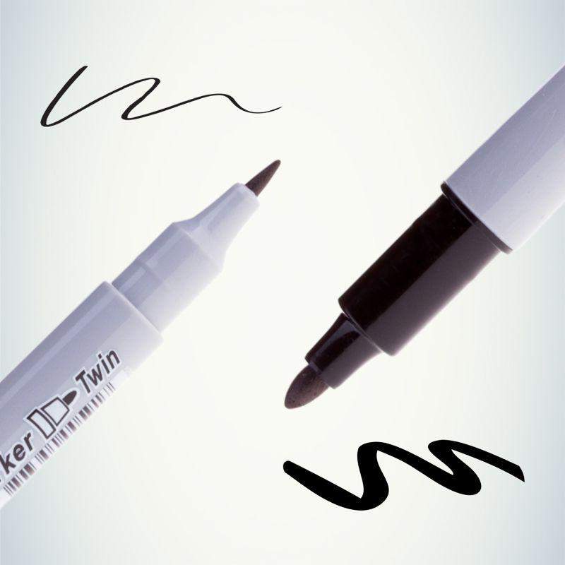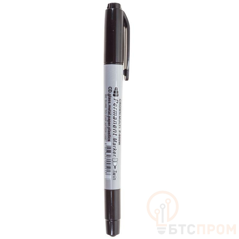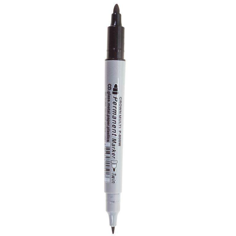 Маркер перманентный двухсторонний Crown «Multi Marker Twin» на спиртовой основе. Используется для письма на изделиях из: бумаги, пластика, металла, стекла, резины, кожи, ткани. Не смазывается, не разбрызгивается и не растекается при нанесении. Чернила содержат высокую концентрацию пигмента, что позволяет им хорошо ложиться на гладкие и шероховатые поверхности. Обладают свето-, влаго- и термостойкостью. Высыхают на поверхности в течение нескольких секунд. Оснащен двумя наконечниками разной толщины. Пулевидная форма наконечников не оставляет царапин при письме. Корпус изделия выполнен из прочного ABS-пластика. Перед началом использования необходимо встряхнуть маркер.