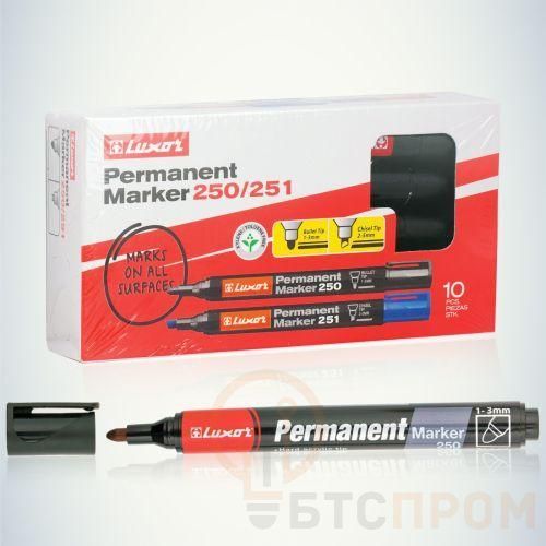 Перманентный маркер Luxor 250 - универсальное решение для маркировки на всех типах поверхностей: металл, дерево, резина, бетон, камень, кирпич, стекло, пленка, картон. Чернила несмываемого маркера устойчивы к климатическим изменениям: дождь, туман, солнце, не стираются и не выцветают в течение длительного времени, оставляют четкую и однородную линию, безопасны для использования и не содержат ксилол и толуол. Чернила на спиртовой основе. Корпус маркера изготовлен из прочного пластика. Цвет чернил - черный, диаметр пишущего узла от 1- 3 мм. Упаковка: картонная коробка по 12 штук. Перманентный маркер Luxor – это сочетание точной и долговечной маркировки!