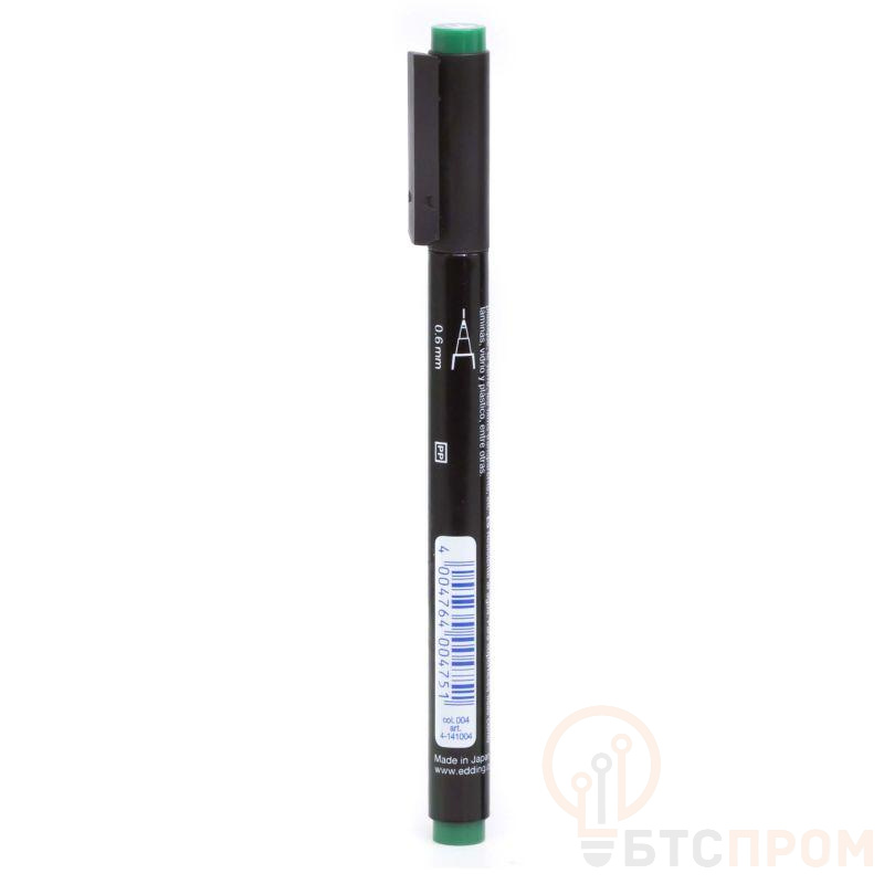 Перманентная ручка (маркер) для нанесения символов на маркировочные ленты и самоклеящиеся этикетки. Водостойкая, с высокой устойчивостью к УФ-излучению. Толщина линии 0,6 мм, цвет зеленый.