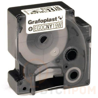 Картридж для мобильных принтеров – лента с клеевой основой, встроенная в картридж, для маркировки кабеля, проводов, телекоммуникационных шкафов, пультов управления. Ширина 19 мм, длина 5,5 м, цвет ленты белый, цвет печатающих символов – черный. Материал – полиэстер.