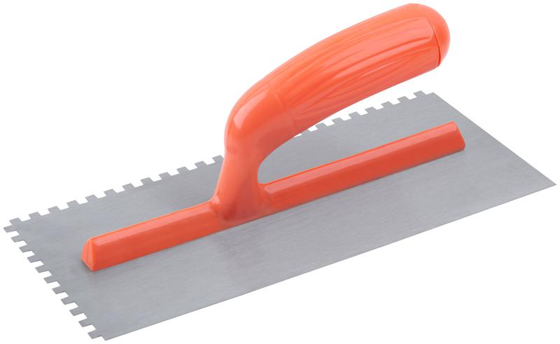 Зубчатая гладилка КУРС предназначена для нанесения и распределения строительных смесей, клеевых составов и различных растворов по поверхности. Полотно из инструментальной стали обладает высокой износостойкостью. Полировка полотна предотвращает прилипание материала. Пластиковая эргономичная рукоятка удобно лежит в руке.