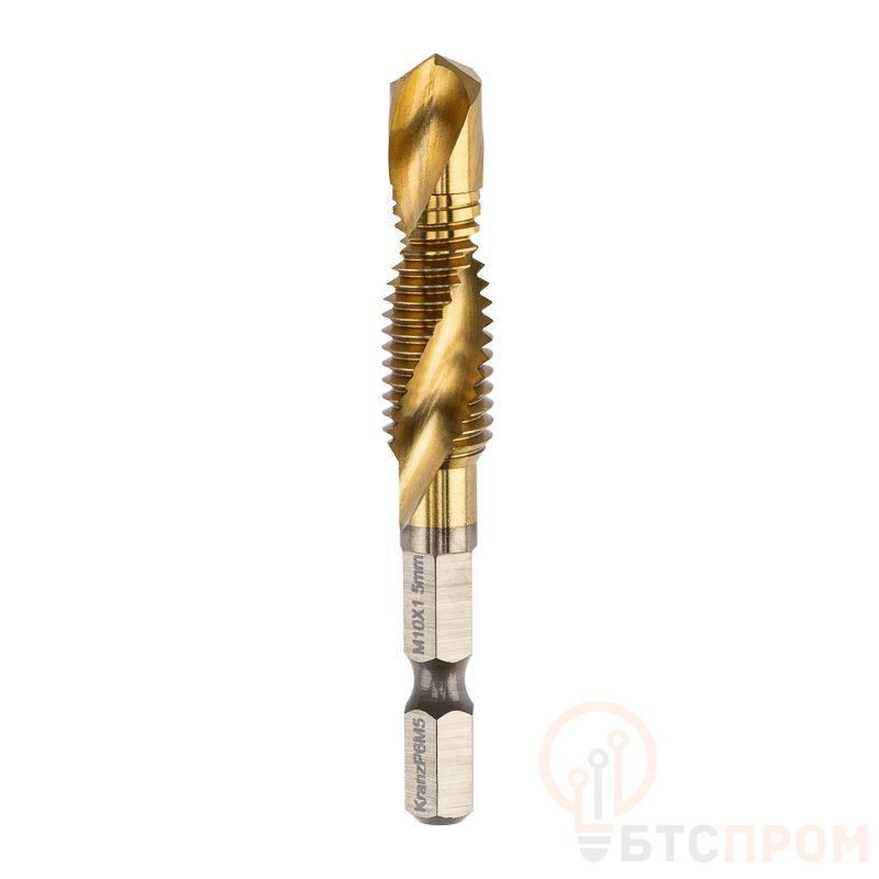 Сверло-метчик KRANZ предназначено для создания резьбы диаметром М10 в различных материалах: металле, пластике, дереве. Сверло изготовлено из быстрорежущей стали P6M5, поэтому отличается высокой надежностью. Технология производства гарантирует максимальную точность резьбы согласно стандартам DIN, что обеспечивает идеальную совместимость с метизами. Титановое покрытие увеличивает стойкость к нагреву и защищает от коррозии, что особенно важно при длительных и интенсивных работах.