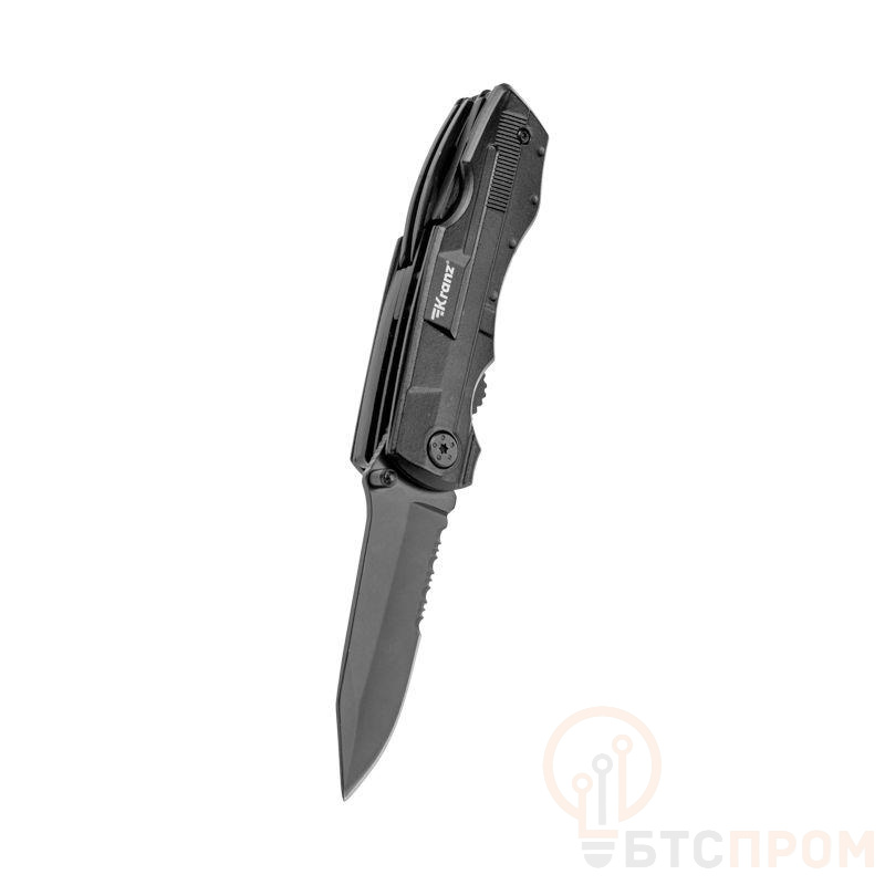 Мультитул 11 в 1 KRANZ – это многофункциональный инструмент, который используется для выполнения широкого спектра действий. Популярен среди специалистов многих областей, а также в быту. Лезвие выполнено из нержавеющей стали 420 с черным покрытием, ручка – из анодированного алюминия. Общая длина инструмента составляет 154 мм, в сложенном виде – 111 мм. Вес: 227 г. Комплектация мультитула: 1. Плоскогубцы рифленые 2. Обычные плоскогубцы 3. Кусачки 4. Острый нож с частичной насечкой 5. Консервный нож 6. Шлицевая отвертка 7. Открывалка для бутылок 8. Шлицевая отвертка 9. Открывалка для бутылок 10. Шлицевая отвертка 11. Отвертка с битами