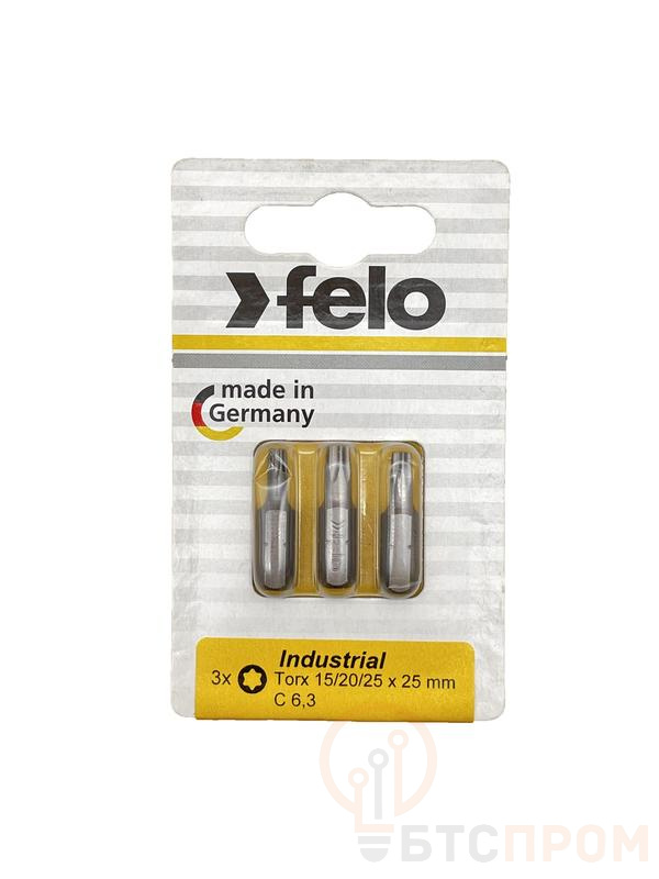 Набор коротких бит 25 мм серии Industrial предназначен для проведения монтажно-демонтажных и ремонтных работ с крепежом типа Torx. Биты Felo изготовлены из высококачественной инструментальной стали (CrMoV), закаленной в масле, поэтому обладают повышенной твердостью (> 62 HRC) и устойчивы к высоким нагрузкам. Кованая часть бит не стачивается, поэтому при закручивании крепежа насадка не проворачивается в шляпке. Биты Felo Industrial подходят для ежедневного профессионального использования. Состав набора: биты 25мм: Тх 15 / 20 / 25.