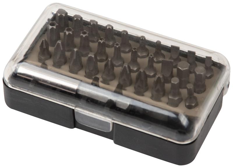 Набор бит FIT IT — надежное и эффективное решение для работ с крепежом. Биты выполнены из качественной хром-ванадиевой стали, что обеспечивает их прочность и долговечность. 30 бит (PH1; PH2; PH2; PH3; PZ1; PZ2; PZ2; PZ3; SL3; SL4; SL5; SL6; H3; H4; H5; H6; T10; T15; T20; T25; T27; T30; T40; «TORX» с отверстием: T10; T15; T20; T25; T27; T30; T40) в комплекте обеспечивают широкий спектр применения. Адаптер для бит с надежным захватом обеспечивает быструю смену оснастки при больших объемах работ с разным крепежом.