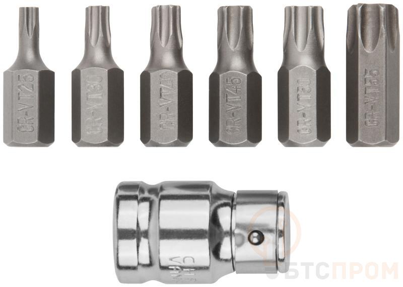 Набор бит FIT "TORX" – это универсальный набор бит, предназначенный для завинчивания и отвинчивания шурупов с шлицем TORX. Биты изготовлены из хромованадиевой стали CrV, которая обладает высокой прочностью и долговечностью. Набор включает семь бит разных размеров, что позволяет работать с различными типами крепежа.