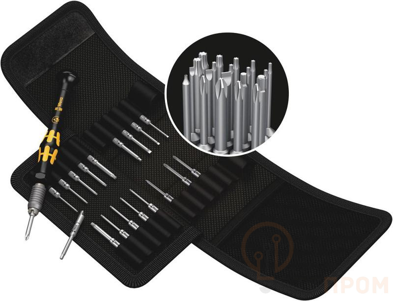 Набор бит и рукоятки-битодержателя антистатической Kraftform Kompakt Micro 20 ESD 1 20 предметов (PH/TX/IP/IPR/SL/HEX) хвостовик Halfmoon/HIOS 4мм Wera WE-073671
