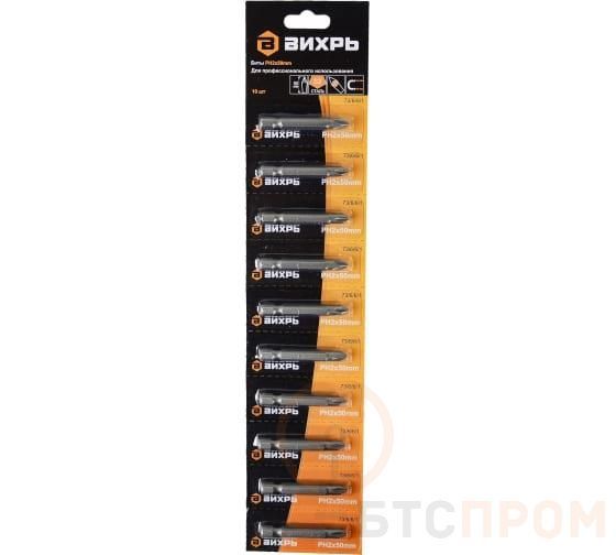 Набор бит PH2 50мм (блист.10шт) Вихрь 73/6/6/1 фото в каталоге от BTSprom.by