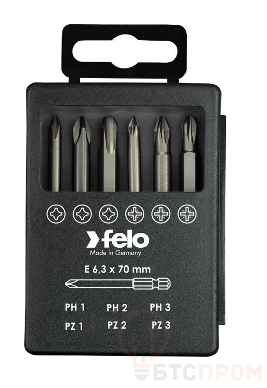 Felo Набор из 6 бит PZ/PH Industrial 70 мм в кейсе размерами PZ 1 / PZ 2 / PZ 3 и PH 1 / PH 2 / PH 3. Набор предназначен для работ с различного рода крепежом.