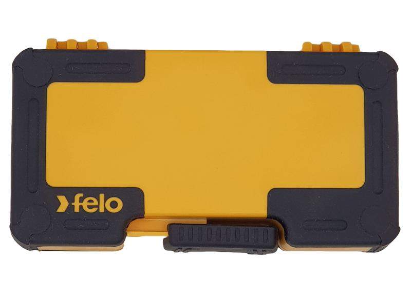 Трещотка 60 зубов с набором бит и головок Felo 05772306 используется при проведении слесарных, ремонтных и монтажных работах. Трещотка имеет усиленный механизм, полностью выполнена из хром-молибден-ванадиевой стали. Прямая фиксация бит в трещотке позволяет инструменту с легкостью работать в труднодоступных местах. Изогнутая ручка защищает пальцы пользователя от механических повреждений при работе. Набор поставляется в прочном пластиковом кейсе, его удобно хранить и транспортировать. Набор состоит из бит PH/PZ/HEX/TX и метрических головок. Состав набора: Мини трещотка 1/4" 5х головки 6 / 7 / 8 / 10 / 13 мм; 15х биты С6,3х25мм HEX 4 / 5 / 6 мм; РН 1 / 2 / 3; PZ 1 / 2 / 3; Torx 10 / 15 / 20 / 25 / 30 / 40; Переходник С 6,3 - 1/4" 25мм Держатель бит Е 6,3 х 58 мм Пластиковый кейс