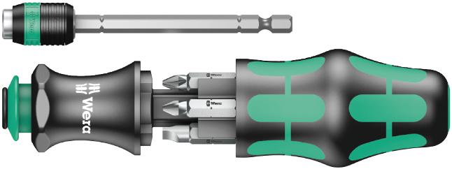 Отвертка-битодержатель Kraftform Kompakt 20 оснащена эргономичной двухкомпонентной рукояткой, обеспечивающей максимально удобный и надежный хват. Система быстрой смены бит и встроенный храповый механизм (трещотка) значительно ускоряют рабочий процесс. Сменный патрон Rapidaptor позволяет мгновенно закреплять биты без усилий, просто вставив их до щелчка.