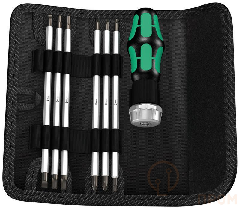 Набор бит с отверткой-битодержателем с трещоткой Kraftform Kompakt Vario RA SB 7 предметов Wera WE-073665