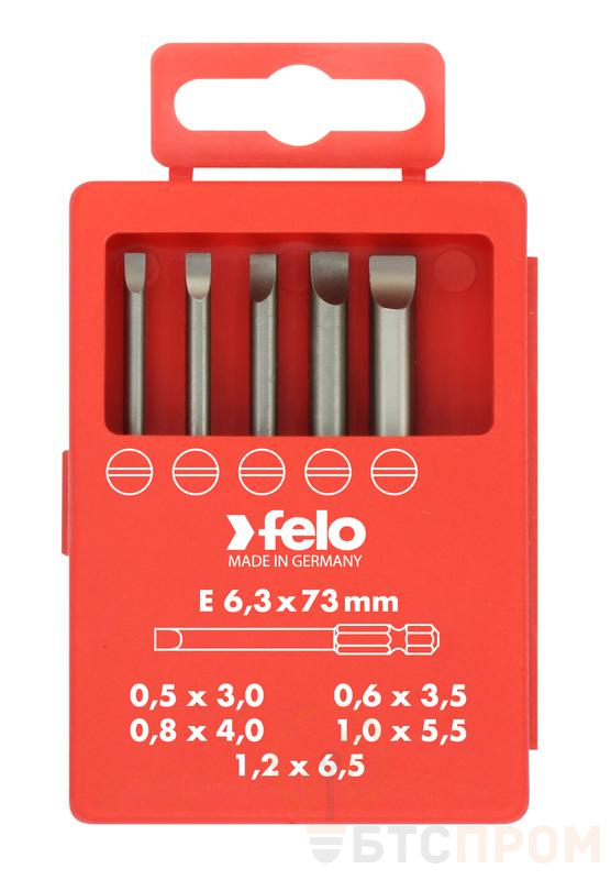 Felo Набор из 5 бит SL Industrial 70 мм в кейсе размерами SL 0,5 x 3,0 / 0,6 x 3,5 / 0,8 x 4,0 / 1,0 x 5,5 / 1,2 x 6,5. Набор предназначен для работ с крепежом типа SL.