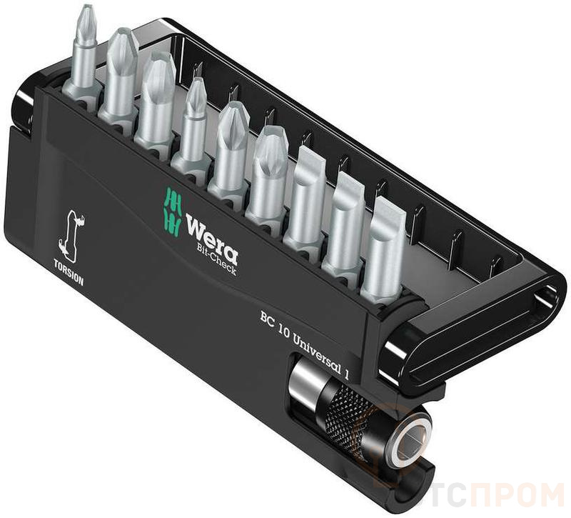 Набор бит торсионных с битодержателем Bit-Check 10 Universal 1 10 предметов 1/4дюйм C6.3 Wera WE-056161