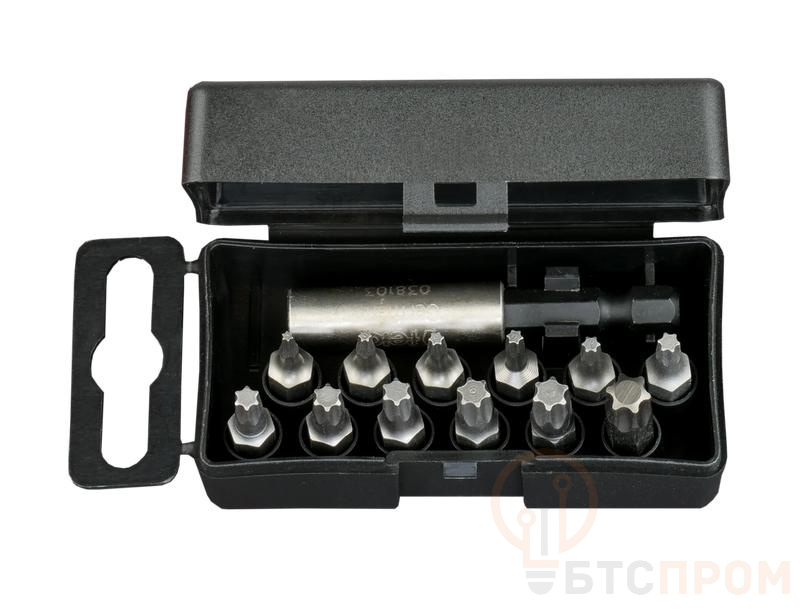 "Описание товара: Набор бит TX Industrial с держателем бит в кейсе, 13 шт, Felo 02691016 — это профессиональный комплект для работы с крепежом типа Torx. Биты изготовлены из высококачественной инструментальной стали CrMoV, прошли масляную закалку, что гарантирует их долговечность и устойчивость к износу при интенсивных нагрузках. Компактный пластиковый кейс обеспечивает удобное хранение и транспортировку, позволяя всегда иметь нужные биты под рукой. Состав набора: TX 6 TX 7 TX 8 TX 9 TX 10 TX 15 TX 20 2x TX 25 TX 27 TX 30 TX 40 Магнитный держатель для бит 1/4"" Основные преимущества: - Биты Torx из прочной инструментальной стали CrMoV — долговечность и устойчивость к высоким нагрузкам. - Масляная закалка — повышенная износостойкость. - Компактный кейс — удобное хранение и транспортировка. - Магнитный держатель — надёжная фиксация бит при работе. - Произведено в Германии — гарантия качества от бренда Felo. Габариты: Длина: 50 мм Ширина: 35 мм Высота: 35 мм Вес: 104 г"