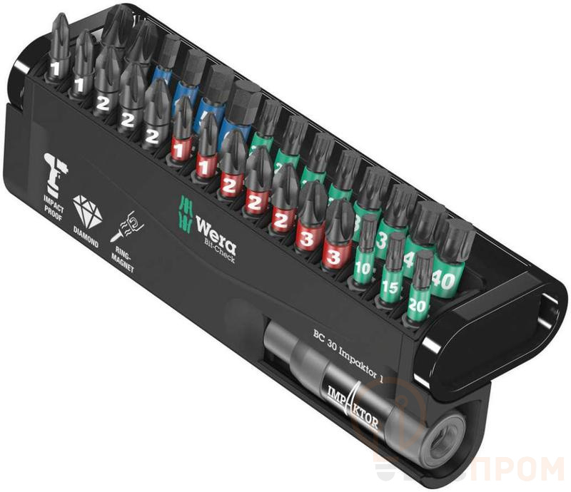 Набор бит ударных с битодержателем Bit-Check 30 Impaktor 1 алмаз 30 предметов 1/4дюйм C6.3 Wera WE-057690