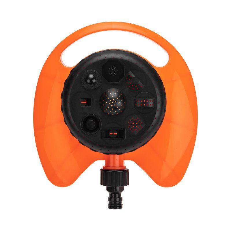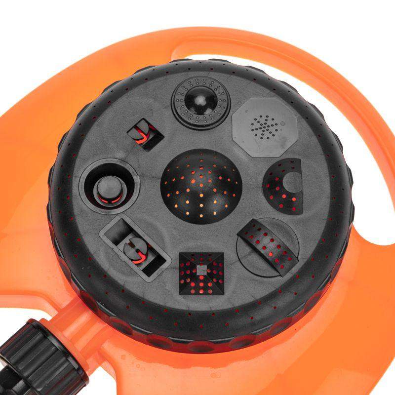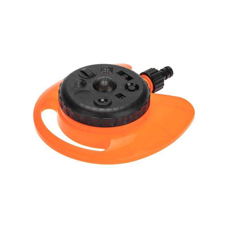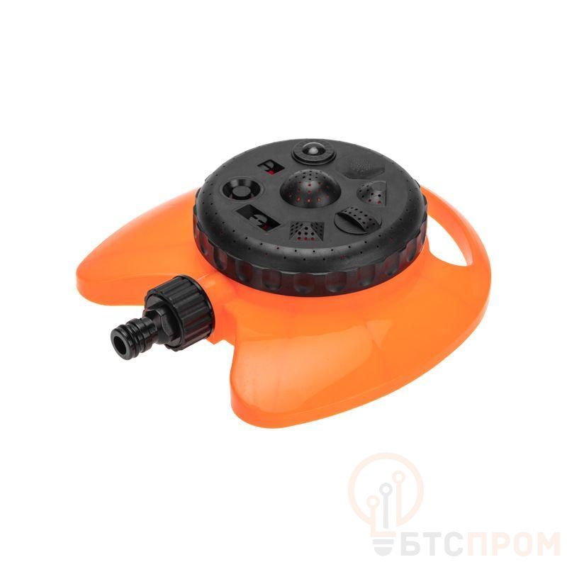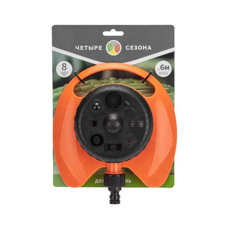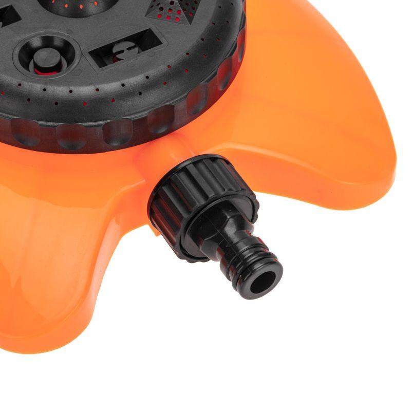 Круговой дождеватель предназначен для полива растений и почвы. Представляет собой многорежимную поворотную головку, закрепленную на неподвижной подставке. Устройство имеет 8 режимов подачи воды. Площадь орошения составляет 100 м2. Надежное и герметичное крепление шланга к дождевателю осуществляется при помощи универсального соединителя, расположенного на корпусе устройства. Дождеватель изготовлен из качественного и прочного пластика, устойчивого к воздействию внешних факторов. Минимальное давление – 2 бара. Максимальная дальность действия – 10 м. Используемые материалы: ABS-пластик и полипропилен.