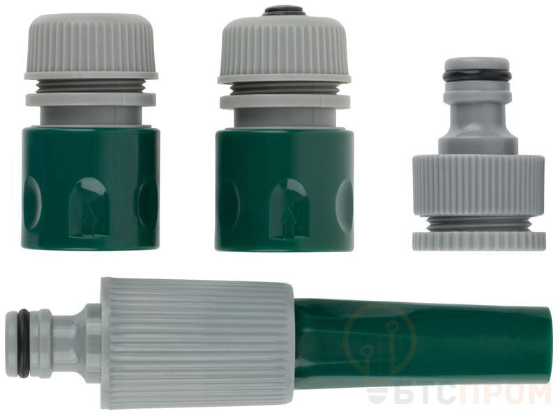 Набор поливочный 4 шт. (насадка для полива, соединитель, соединитель с автостопом, адаптер внешний). Материал: ABS пластик.