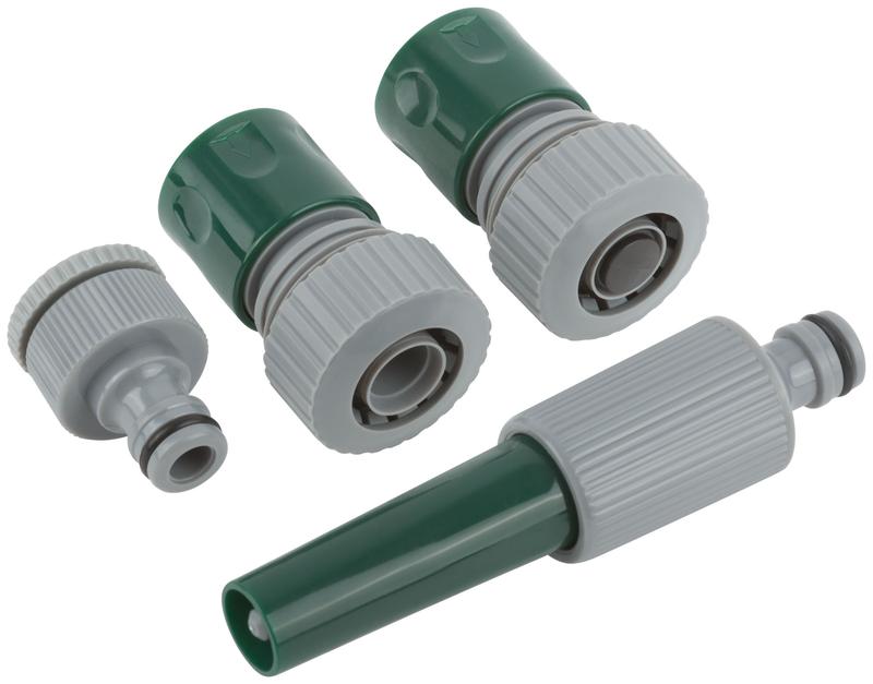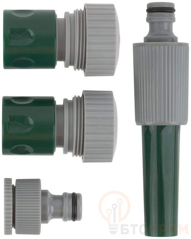 Набор поливочный 4 шт. (насадка для полива, соединитель, соединитель с автостопом, адаптер внешний). Материал: ABS пластик.