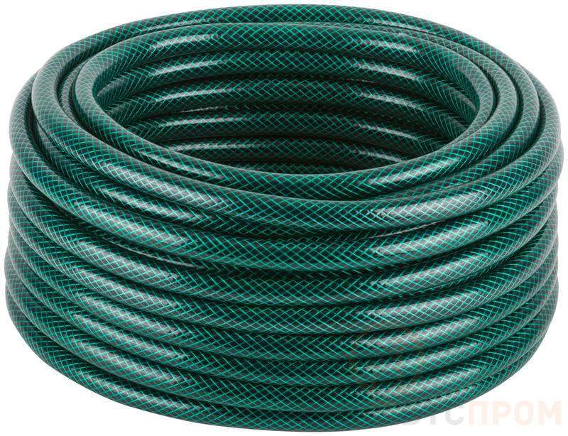 Шланг поливочный трехслойный, армированный синтетической нитью КУРС РОС предназначен для полива, перекачки и прочих работ с холодной водой. Внутренний ПВХ-слой — непрозрачный, защищает от проникновения солнечных лучей и препятствует образованию водорослей внутри шланга. Наружный ПВХ-слой — прозрачный, окрашен в зеленый цвет. При производстве используют специальные добавки, защищающие от воздействия внешних факторов, таких как ультрафиолетовое излучение или истирание. Между внутренним и наружным слоями проложен высокопрочный плетеный корд из синтетической нити. Шланги не перегибаются и не заламываются.