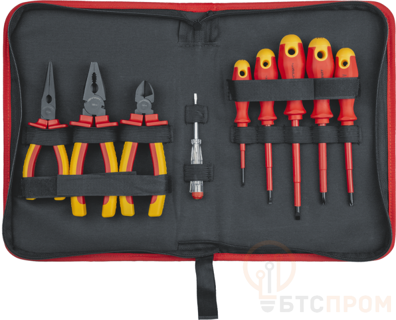 Наборы диэлектрического инструмента Онлайт Монтаж предназначены для проведения широкого спектра профессиональных электротехнических и электромонтажных работ в установках с напряжением до 1000 В. Инструменты поставляются в компактном и удобном тканевом кофре, что обеспечивает их безопасное хранение и транспортировку. Для работ под напряжением до 1000 В. Шарнирно-губцевые инструменты изготовлены из кованой углеродистой стали, имеют антикоррозийное покрытие. Стержни отверток выполнены из хром-ванадиевой стали, закалены и намагничены. Двухкомпонентные рукоятки обеспечивают надежный комфортный хват. Кофр из прочного синтетического водоотталкивающего материала.