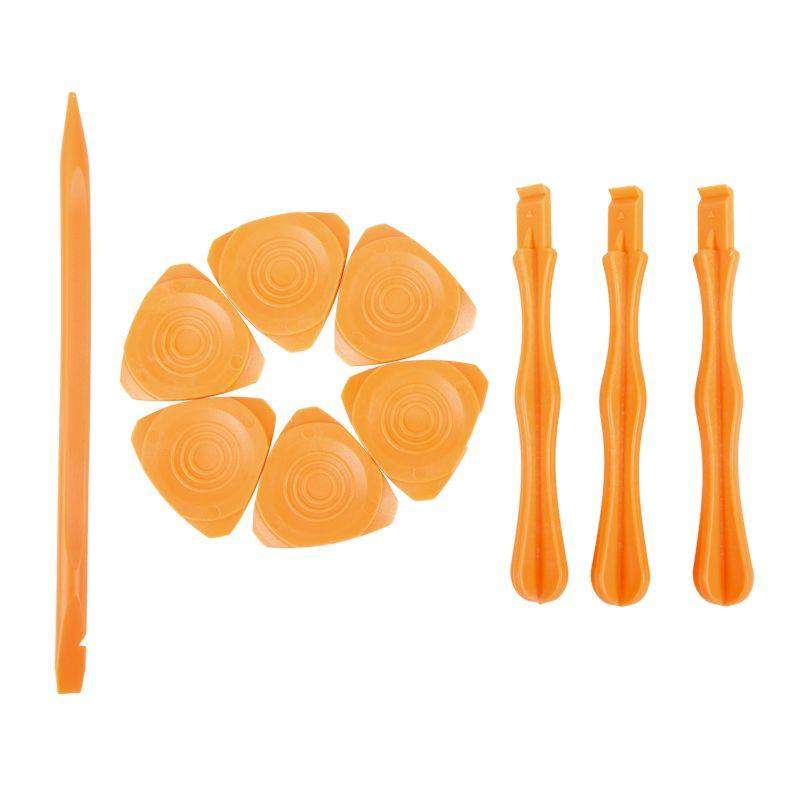 Набор инструментов REXANT RA-04 предназначен для вскрытия корпусов и удаления дисплеев с портативной техники, такой как: смартфоны, планшеты, ноутбуки, коммуникаторы, PlayStation, продукция Apple, устройства, работающие на платформе Android. Весь комплект изготовлен из прочного антистатического пластика, который защищает компоненты устройств при ремонте от поражения статическим электричеством. Количество инструментов в наборе – 10 шт. В состав входят: иглообразная лопатка, 6 медиаторов, 3 спуджера.