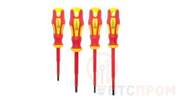 Набор изолированных отверток EKF MASTER – ваш надежный помощник для работы с электрическими устройствами. В комплект входят отвертки с наконечниками PH1, PH2, SL4 и SL5.5, каждая из которых оснащена намагниченным жалом для удобства использования и надежной фиксации винтов. Изоляция гарантирует безопасность при работе под напряжением, а прочные материалы обеспечивают долговечность инструмента.